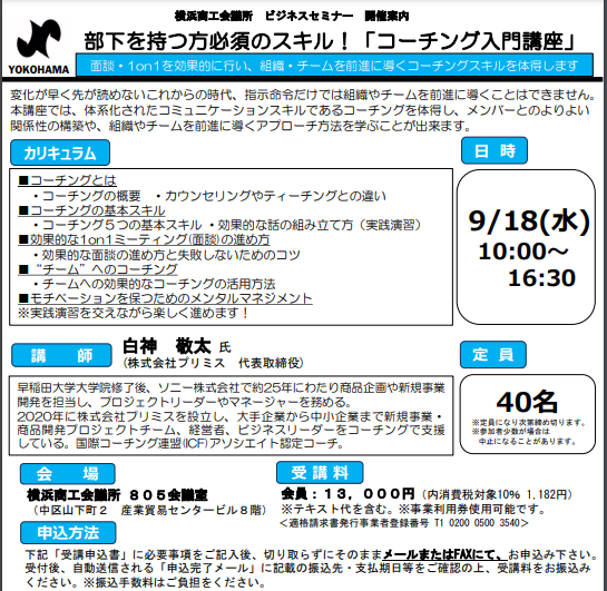 部下を持つ方必須のスキル!「コーチング入門講座」